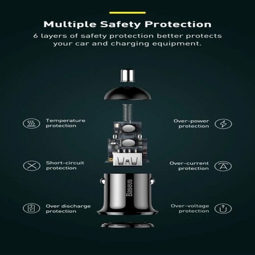 ¿Necesitas cargar dos dispositivos a máxima velocidad en tu auto sin ocupar espacio? Este cargador mini de Baseus ofrece 4.8A de potencia total y tecnología inteligente para mantener tus dispositivos al 100% en viajes cortos o largos.