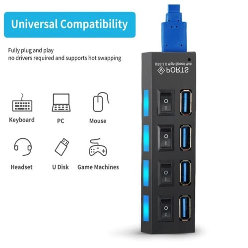 ¿Necesitas más puertos USB pero odias los hubs lentos y sin control? Este Hub USB Extensor 4 Puertos con Botones es la solución perfecta para conectar todos tus dispositivos sin perder velocidad ni organización. ¡Controla cada puerto con un solo clic!