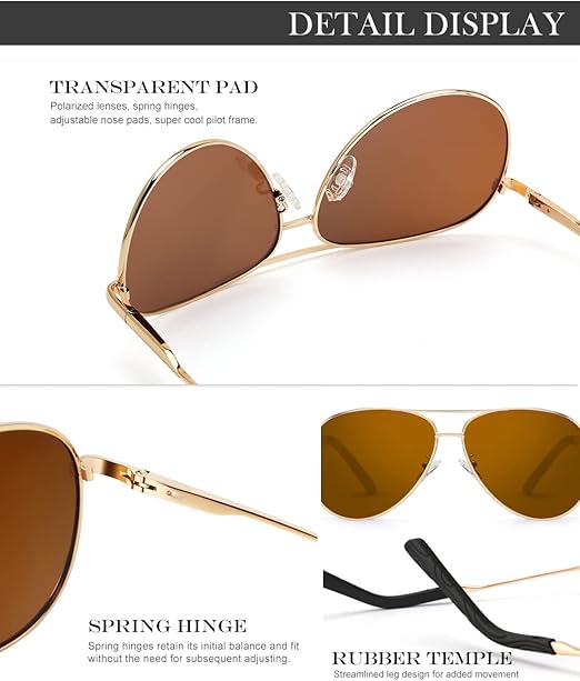 ¿Buscas gafas de sol que combinen protección UV400 y moda urbana? Nuestros lentes tipo aviador militar bloquean el 100% de rayos UVA/UVB mientras añaden un toque vintage y sofisticado a tu look. Ideales para conducir, viajar o pasear, con montura metálica resistente y lentes polarizados que reducen el deslumbramiento. ¡No solo son un accesorio de moda, sino un escudo esencial para tu salud visual!